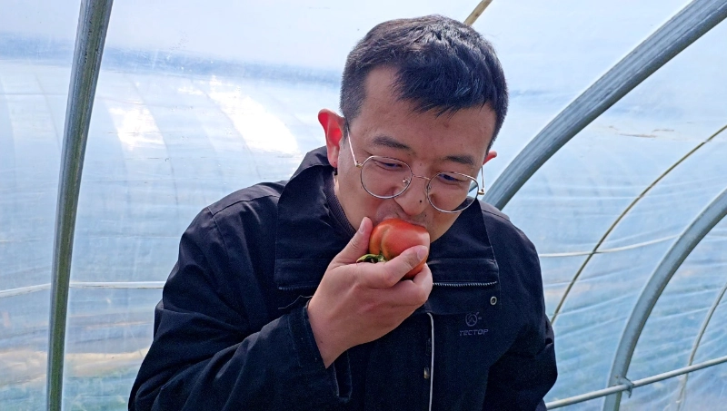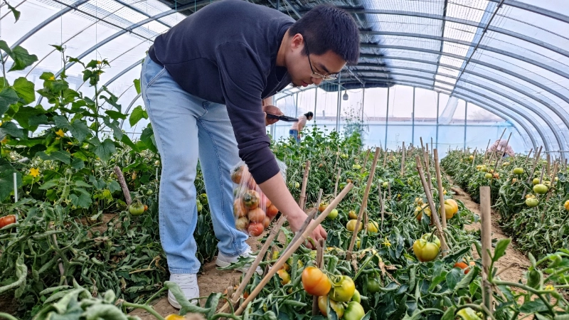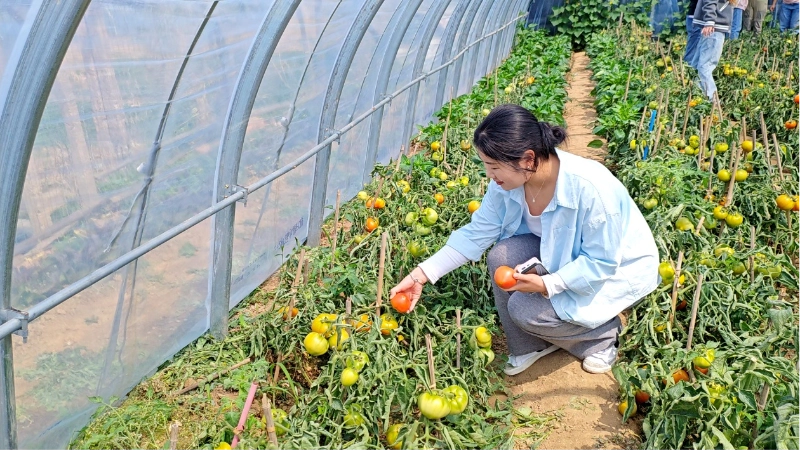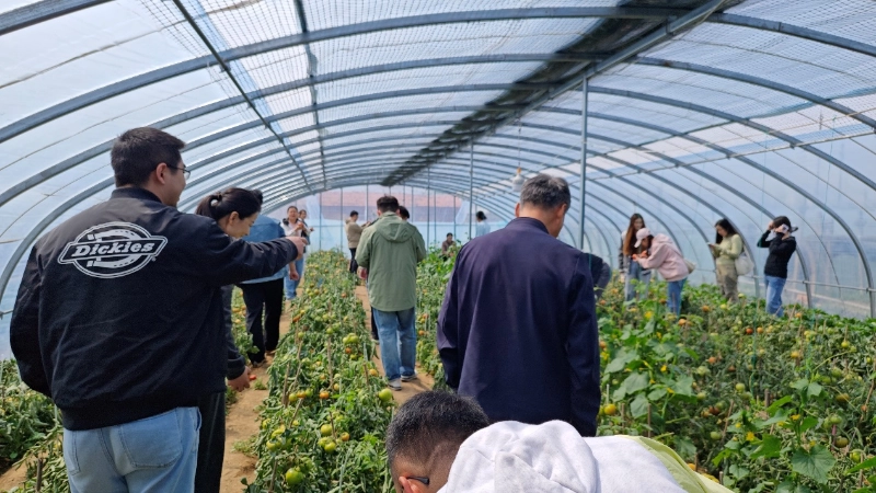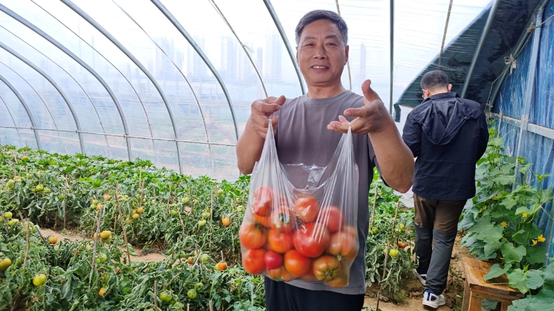 بعد از شور و شوق، زمان راحتی بود. ساعت 10:30 صبح با هم به باغ چیدن گوجه فرنگی Xiazhuang رفتیم تا با طبیعت دیداری صمیمی داشته باشیم. اتفاقاً روز روشنی بود و خورشید بر مزارع تابید. شاخهها و برگهای سبز با 69 گوجهفرنگی قرمز روشن پوشانده شده بود که گرد و چاق و به رنگ روشن بود و از دور باعث ترشح بزاق مردم میشد.