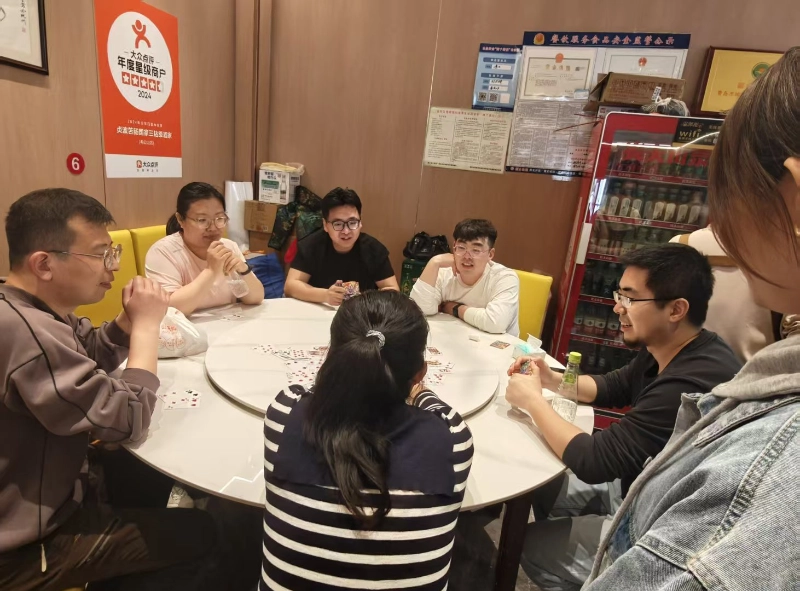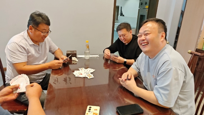 بعد از استراحتی کوتاه در ساعت 12:30 ظهر به سمت هتل حرکت کردیم و مسابقه جالب گوندان را شروع کردیم. به عنوان یک پروژه تیم سازی که مورد علاقه همه است، Guandan نه تنها تفکر منطقی شخصی را آزمایش می کند، بلکه به همکاری ضمنی بین شرکا نیز توجه بیشتری می کند - "یک کارت خوب برای لحظه ای رقابت نمی کند و درک ضمنی شریک مهم تر از قهرمانی شخصی است" که دقیقاً اهمیت تیم سازی Guandan است.